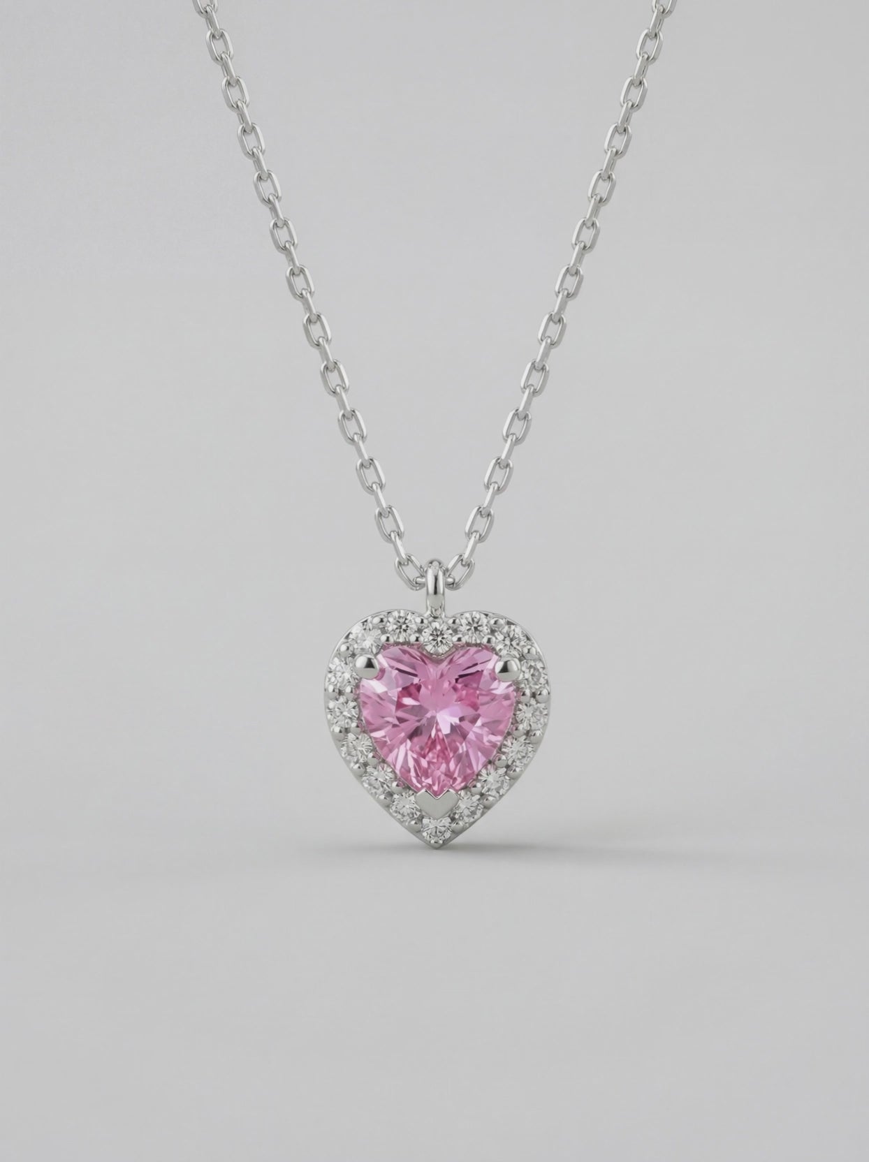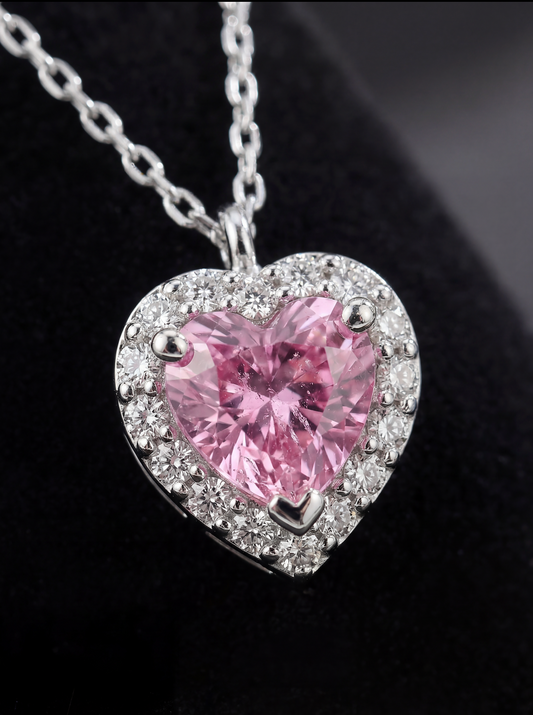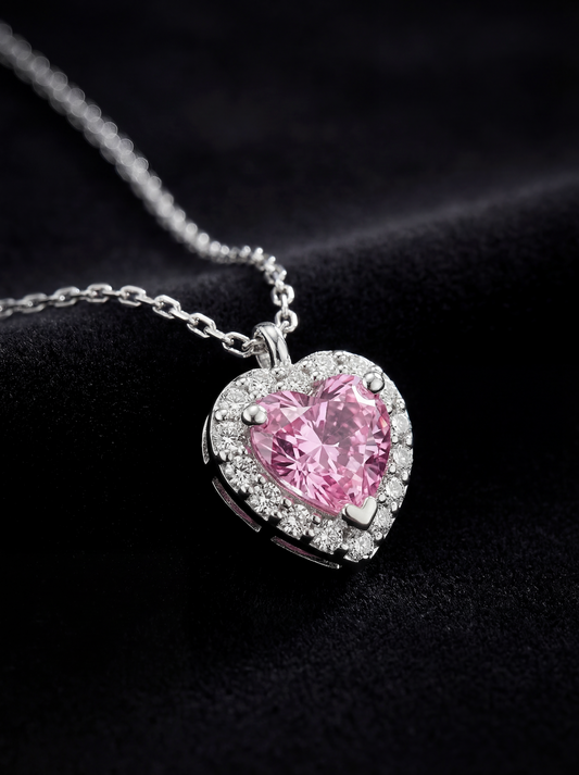 Lunaria, zarafeti bir mücevher formunda somutlaştırıyor. Merkezindeki pembe zirkon kalp, etrafını saran pırlanta kesim kristallerle büyüleyici bir prizma etkisi yaratır.